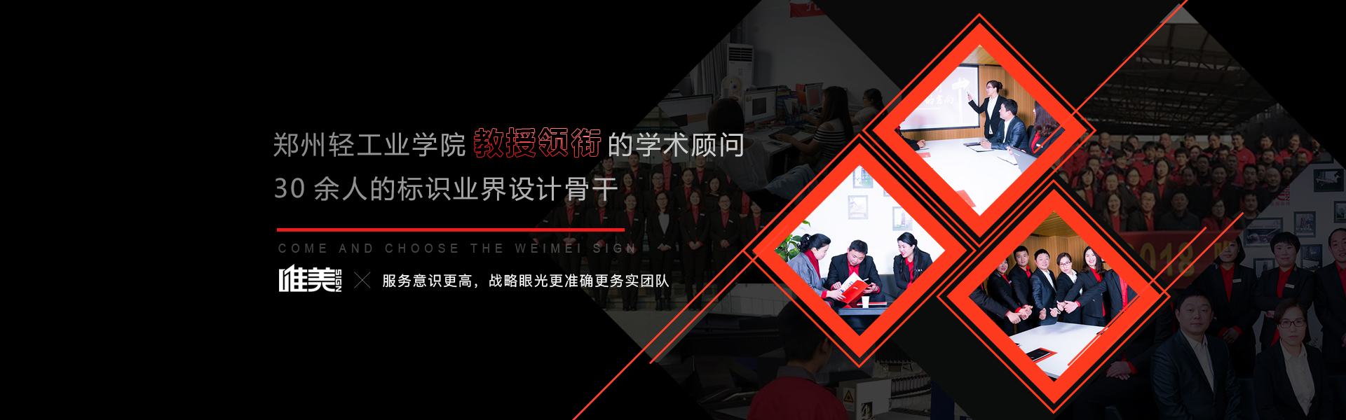 鄭州唯美標(biāo)識設(shè)計制作公司擁有21000平方現(xiàn)代化生產(chǎn)車間、多臺先進(jìn)設(shè)備、100多名技工團(tuán)隊、12位資深設(shè)計師團(tuán)隊,嚴(yán)遵19道制作工序和6S管理體系,成功服務(wù)2800多個標(biāo)識項(xiàng)目,3...